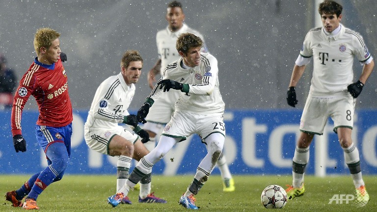 Bayern's Dutch attacker Arjen Robben, Mario Goetze and Thomas Muller scored one apiece under the snow of the Khimki Arena, while Japanese playmaker Keisuke Honda was on target for CSKA.